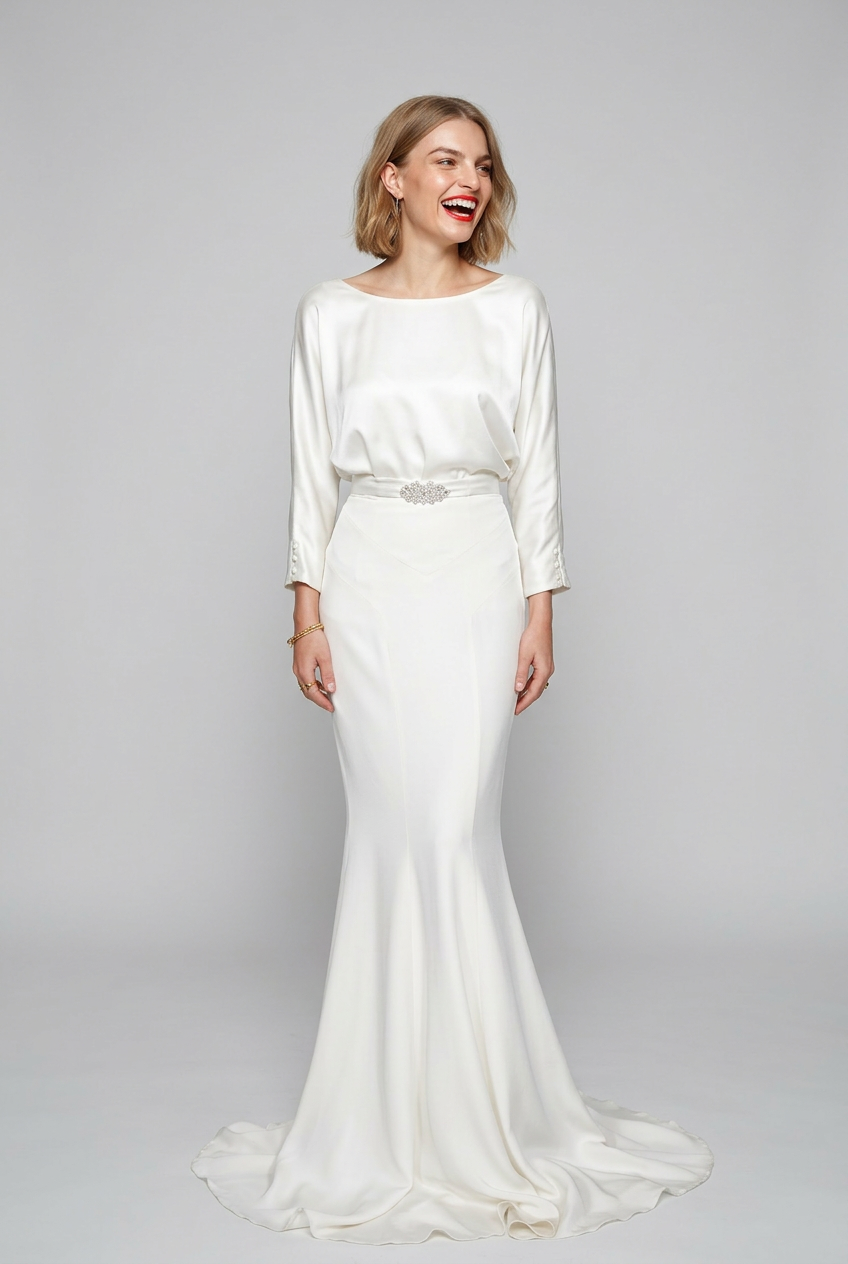 The Petal skirt is simple and chic. Its classic and sassy silhouette are perfect for a modern bride. With its elegant tailoring this skirt skims your body with a beautiful shape. The skirt sits high on your waist and looks lovely with one of our more blouson tops tucked in. This skirt fastens at the back with a simple concealed zip.